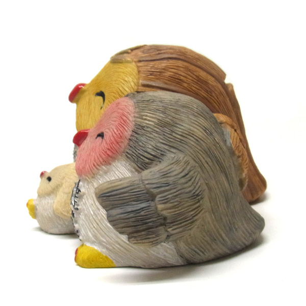 かわいい家族ふくろうの置物です。ふくろうは「不苦労」「福朗」など名前にちなんで縁起の良い動物として有名です。福を溜めこむという言われにちなんで貯金箱風になっています。 お手頃なサイズですのでぜひ福を呼び込むためにご活用ください。