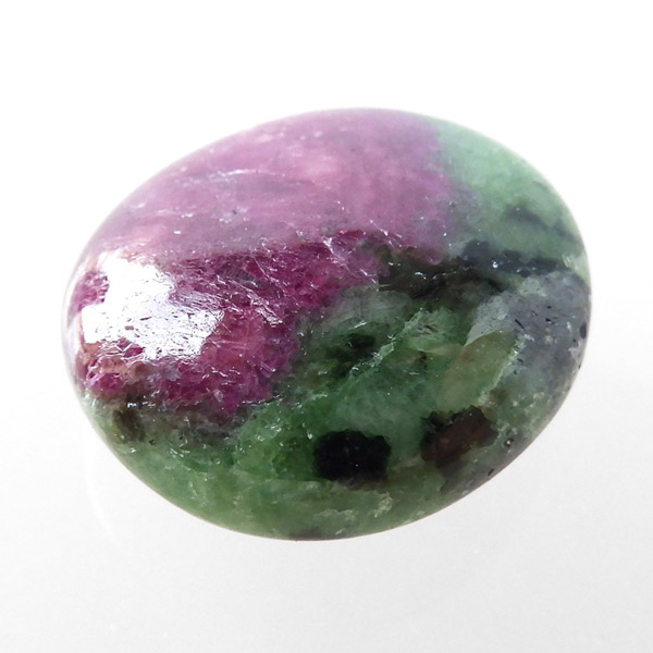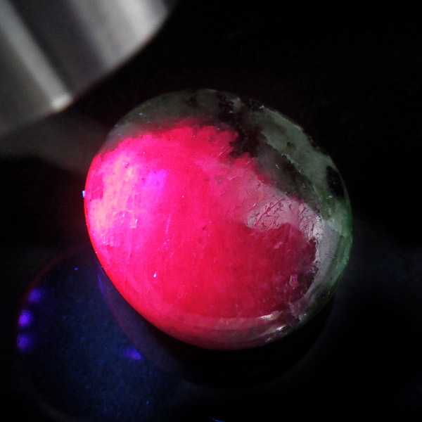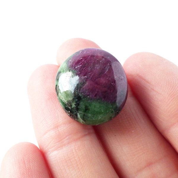 インド産ルビーインゾイサイトのタンブルです。濃緑色のゾイサイトの中に濃紅色のルビーが入っています。赤系の石、特にルビーはとても貴重な天然石です。ルビーインゾイサイトは別名アニョライトと呼ばれています。マサイ族の言葉で緑を意味するアニョリが由来とされています。ブラックライトを照射することでルビーレッドが鮮やかに蛍光します。