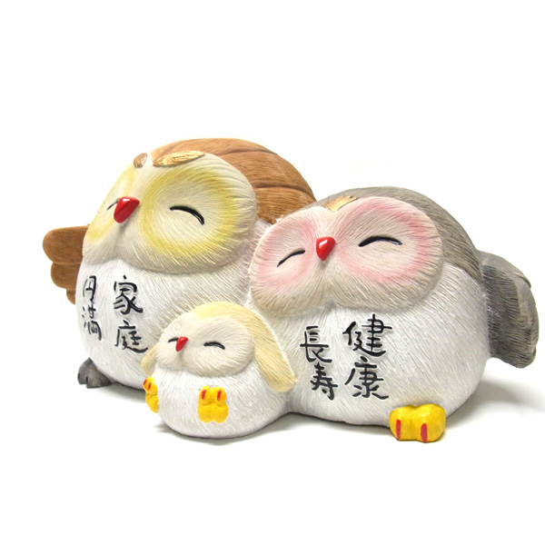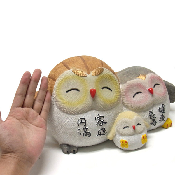 家内安全 家族ふくろう (大) 高さ17cm 置物