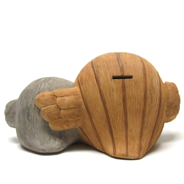 かわいい家族ふくろうの置物です。ふくろうは「不苦労」「福朗」など名前にちなんで縁起の良い動物として有名です。福を溜めこむという言われにちなんで貯金箱風になっています。 大きなサイズで存在感がありますのでぜひ福を呼び込むためにご活用ください。