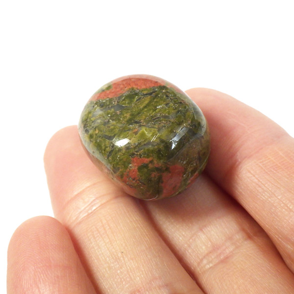 複数の石で構成されるアメリカ・ノースカロライナ州産、ユナカイトのタンブルです。