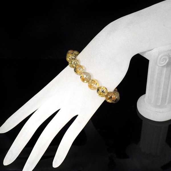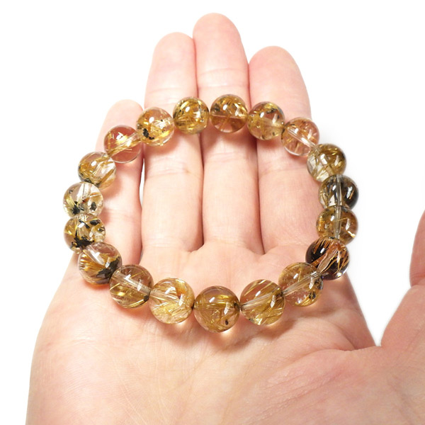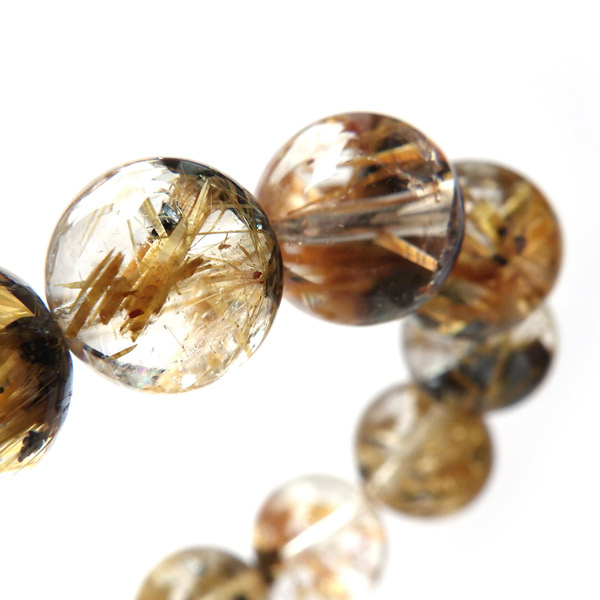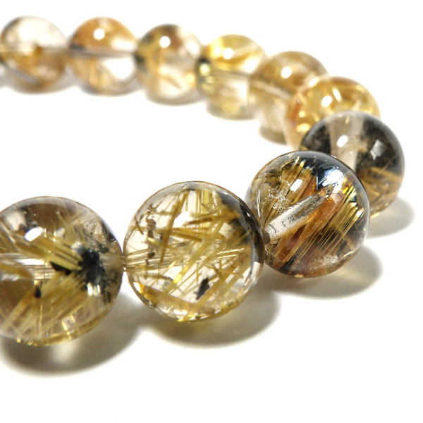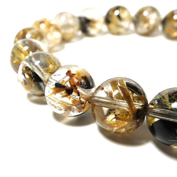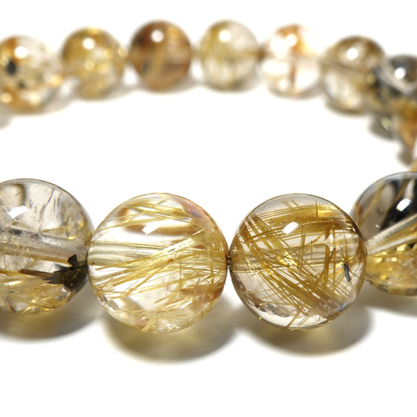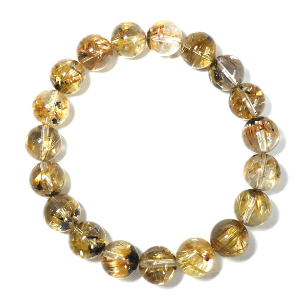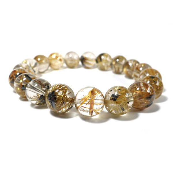 ヘマタイトルチルクォーツを使用したブレスレットです。 ヘマタイトとルチルが共生し、さらにクォーツに内包された希少なブレスレットになります。ルチルの色がゴールドでクォーツの透明度が大変高く、大変品質の良いものです。ルチルクォーツの金運はもとよりヘマタイトの勝利・成功などの意味合いからビジネスのお守りとして良いかもしれません。