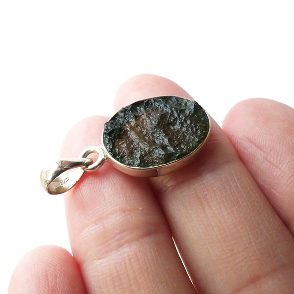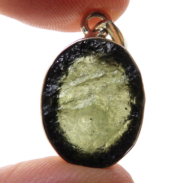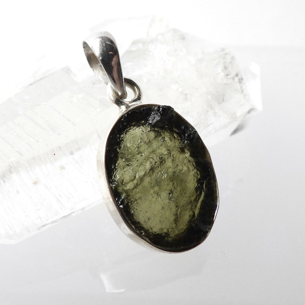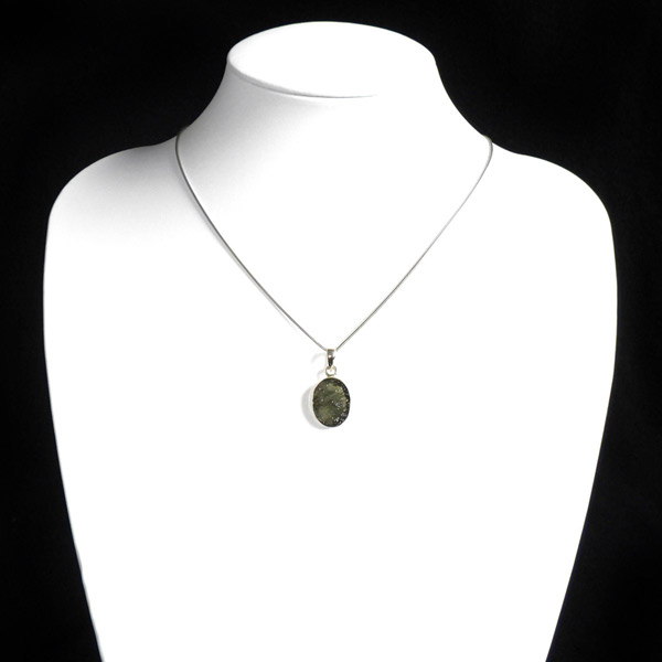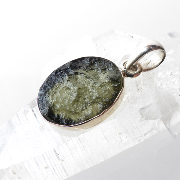 チェコ産のモルダバイト、ペンダントトップです。モルダバイトは、隕石が落下した際に起こる膨大な熱量と衝撃によって、地上の物質と隕石の成分が融解し形成された天然ガラス、テクタイトの一種とされています。原石をそのままにペンダントトップに仕上げました。確かな品質のモルダバイトを存分にご堪能下さい。