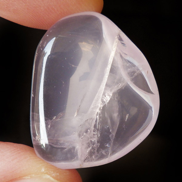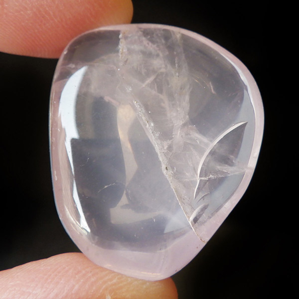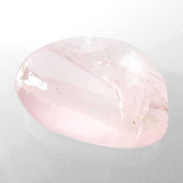マダガスカル産のピンクジラソルクォーツ、タンブルです。ジラソルクォーツとはミルキークォーツの仲間で、マダガスカル特有の乳白色の光沢感のある水晶のことです。クォーツでありながらムーンストーンのような透明感があることが特徴で、カットの仕方によっては、独特のスター効果が現れます。アルミニウムやチタンの含有によって、薄っすらとピンク色になるものもあり、それをピンクジラソルクォーツと呼びます。ピンクジラソルは、スターローズクォーツと近縁で、酸化の具合でホワイトのミルキークォーツとの中間に位置する鉱物です。