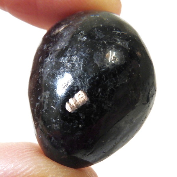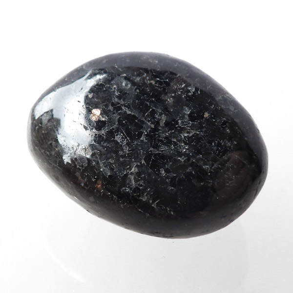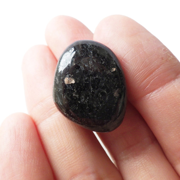 チャイナ産のヌーマイト、タンブルです。ヌーマイトは、1982年にグリーンランドのヌーク地方で発見され、地名に因んで名づけられました。ヌーマイト自体は30億年前から地球に存在したといわれる石で、気の遠くなるような年月を経て現代に現れた石だといわれています。和名は角閃石片麻岩。アンソフィライトやゲドライト、石英、など多様なミネラルを含んだ変成岩といわれています。チャイナ産のヌーマイトは一見、真っ黒い石に見えますが、光の角度によって鮮やかなブロンズやシルバーの閃光を示します。