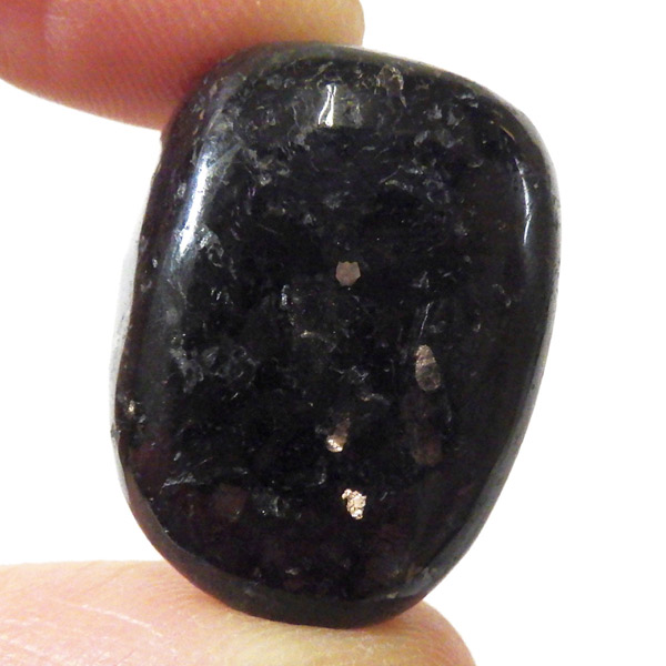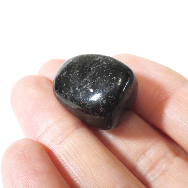 チャイナ産のヌーマイト、タンブルです。ヌーマイトは、1982年にグリーンランドのヌーク地方で発見され、地名に因んで名づけられました。ヌーマイト自体は30億年前から地球に存在したといわれる石で、気の遠くなるような年月を経て現代に現れた石だといわれています。和名は角閃石片麻岩。アンソフィライトやゲドライト、石英、など多様なミネラルを含んだ変成岩といわれています。チャイナ産のヌーマイトは一見、真っ黒い石に見えますが、光の角度によって鮮やかなブロンズやシルバーの閃光を示します。