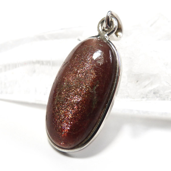 ブラッドショットアイオライトのペンダントトップです。 ブラッドショットアイオライトはアイオライトとサンストーンの中間石で鉄分を多く含んでキラキラと輝く石です。インドの限られた地域でしか採れないことから、ブラッドショットアイオライトそのものがレアストーンで大変希少です。サンストーン成分多めで全面キラキラと色彩の表情を見せてくれます。