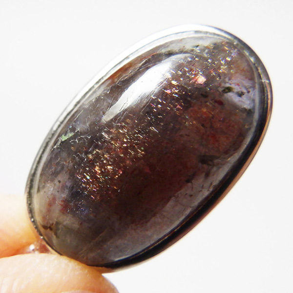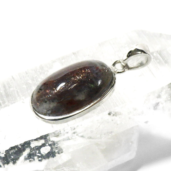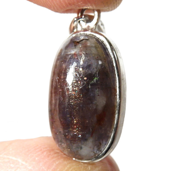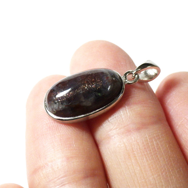 ブラッドショットアイオライトのペンダントトップです。 ブラッドショットアイオライトはアイオライトとサンストーンの中間石で鉄分を多く含んでキラキラと輝く石です。インドの限られた地域でしか採れないことから、ブラッドショットアイオライトそのものがレアストーンで大変希少です。キラキラと色彩の表情を見せてくれます。