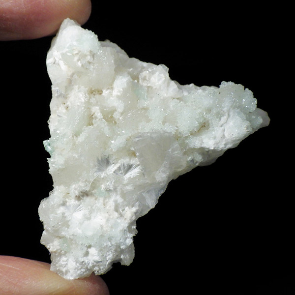 インド、プネー産のグリーンアポフィライト原石です。白いスコレサイトまたはスティルバイト上にグリーンのアポフィライトが数か所確認できます。裏も細やかな結晶が成長しており、見て楽しいと思います。メインのグリーンアポフィライトはなんともいえないピュアなグリーンでとてもきれいです。