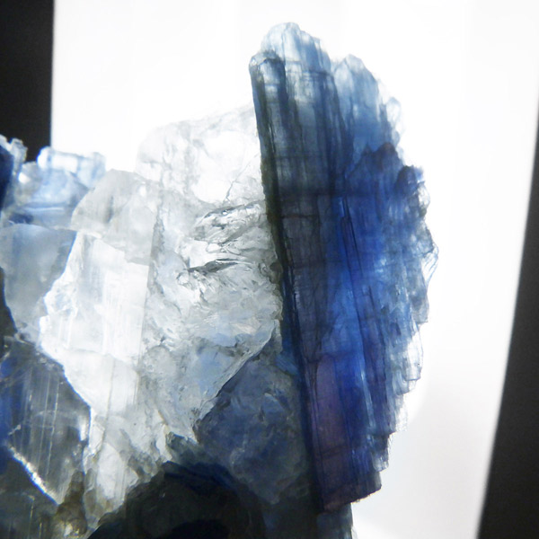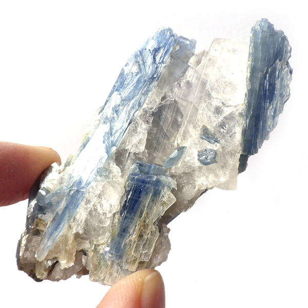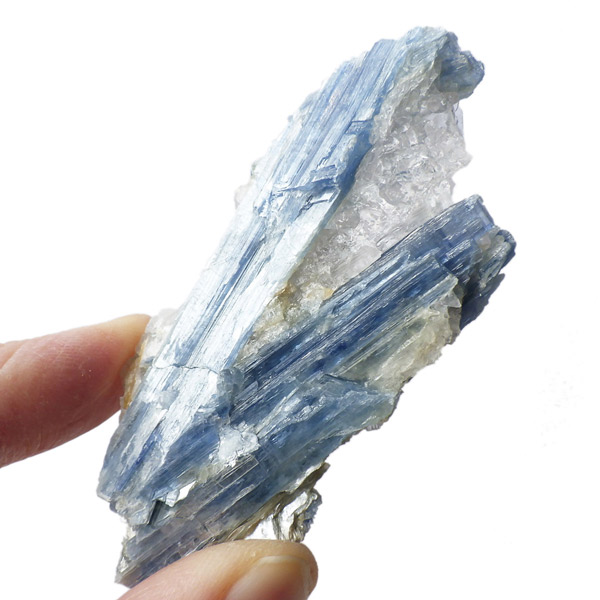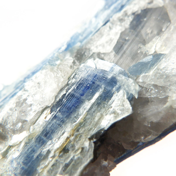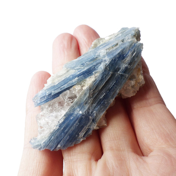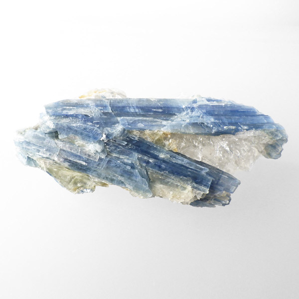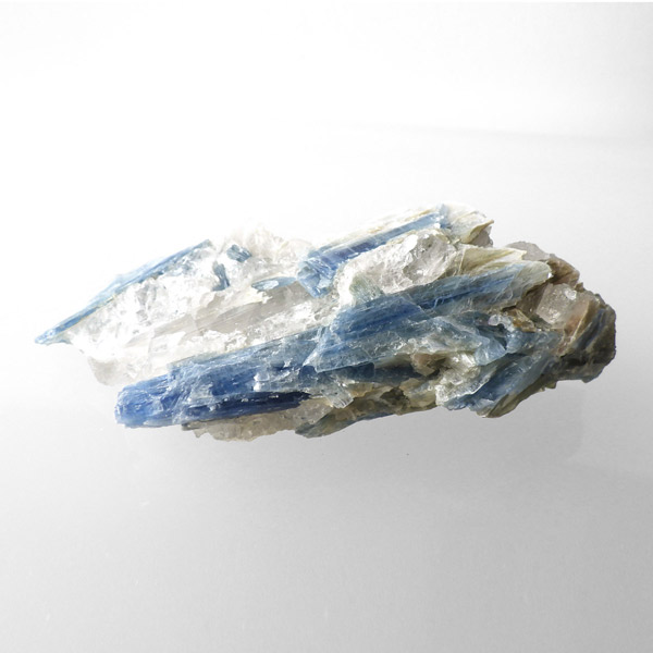 ブラジル産のカイヤナイト原石です。カイヤナイトはブルーがきれいな人気の鉱物です。柱状に伸びる結晶がうっとりする美しさを持っています。角度を変えると光を反射し、キラキラとした輝きが、これまた美しいです。