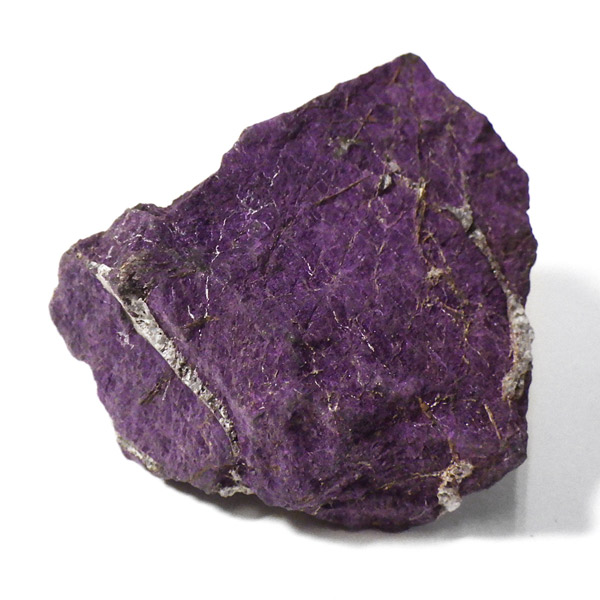 ナミビア産のパープライト原石です。ビロードのようになめらかな独特の照りと、深みのある赤紫色が魅力的です。光沢のある紫色が非常に美しい表情を魅せてくれます。「パープライト」という名前は、ラテン語で「赤紫」を意味する単語に由来しています。日本名では「紫石(むらさきいし)」、または「紫鉱(むらさきこう)」と呼ばれています。