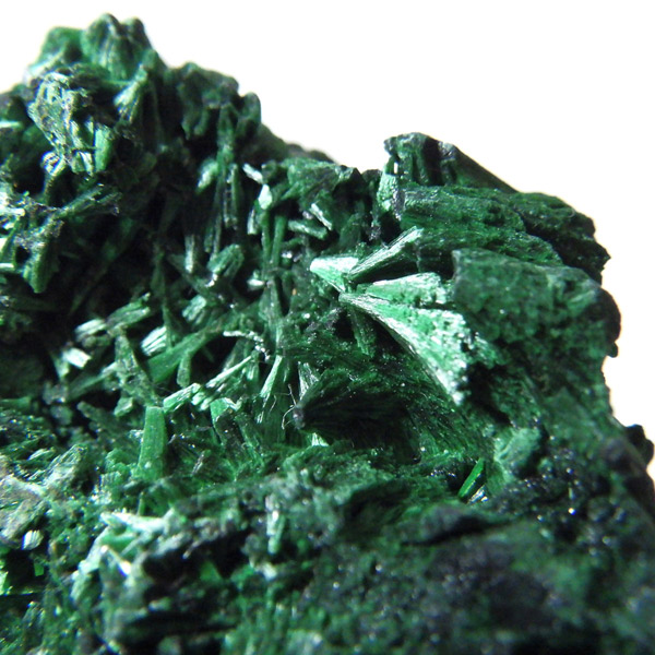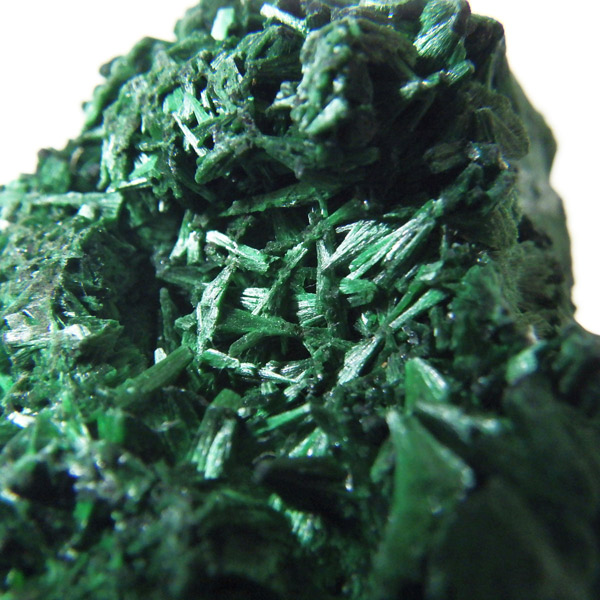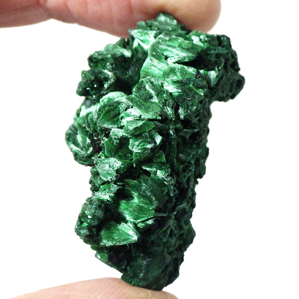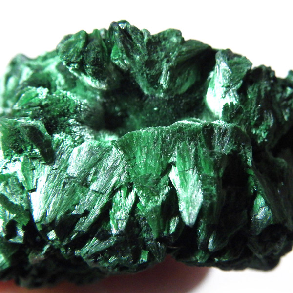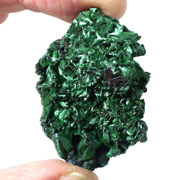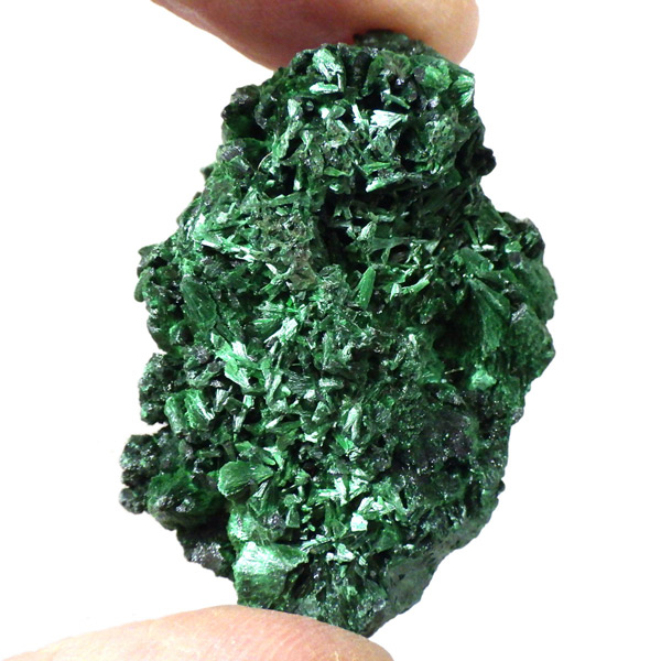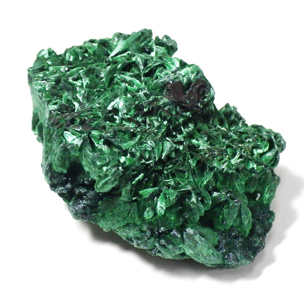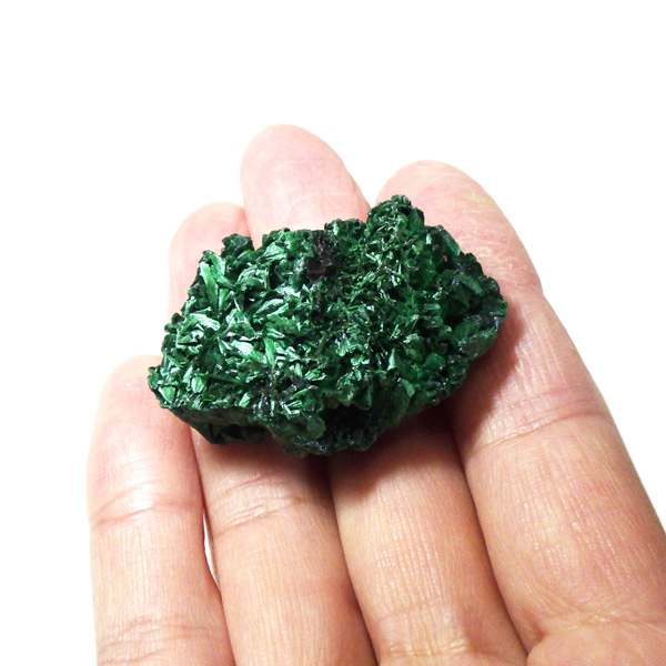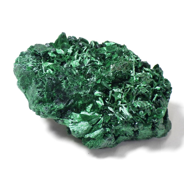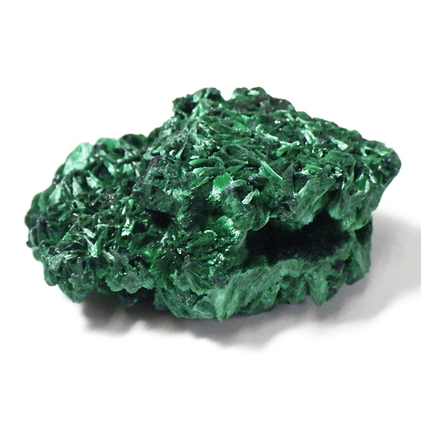 コンゴ産のマラカイト原石です。繊維状の結晶が集まった美しい一品で、ベルベットのような光沢があります。艶やかに光るきれいなグリーンで、一見脆そうに見えますが触ってみるとしっかりした結晶です。