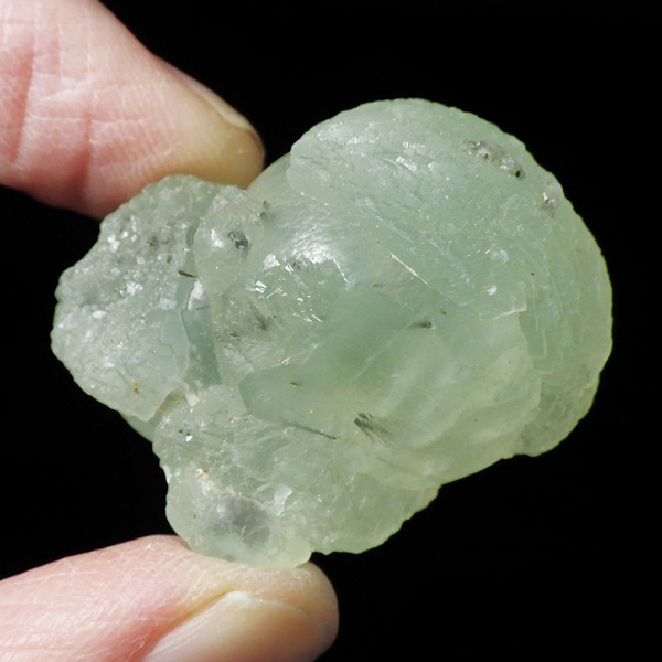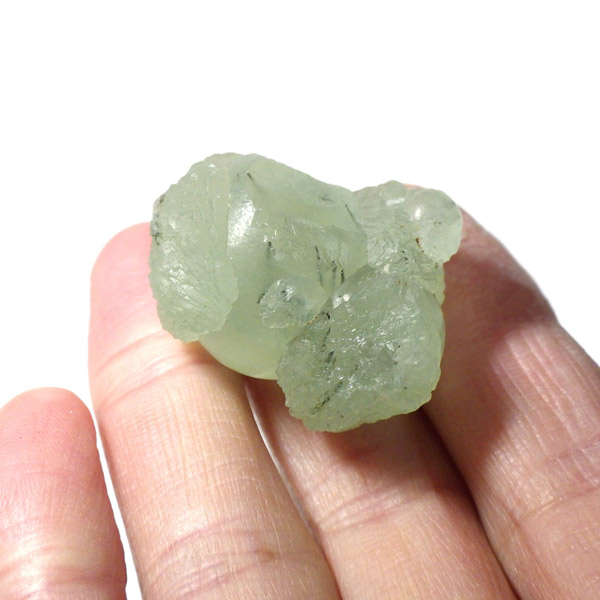 コロッとした形が可愛らしマリ共和国産のプレナイト with エピドート原石です。 ぶどうのように見えることから、和名でぶどう石(葡萄石)と呼ばれています。 優しい黄緑色の色彩で透明度が高いことが特徴です。 プレナイトの内包物として、深緑の針柱状の鉱物、エピドート(緑簾石)が共生しています。形も良くかわいらしいプレナイトです。