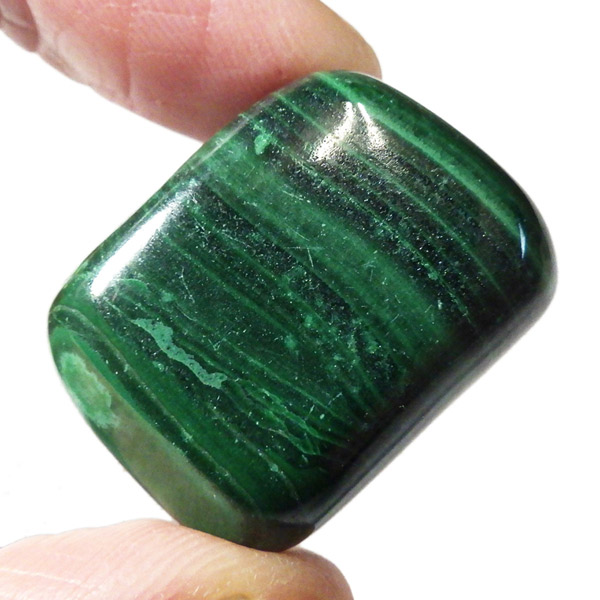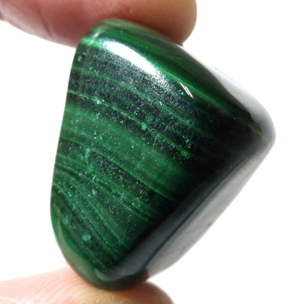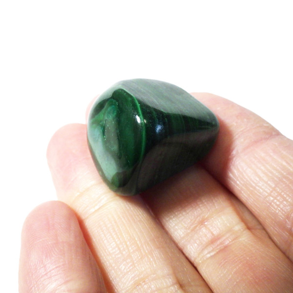 コンゴ産のマラカイト、タンブルです。濃いグリーンカラーに独特の模様を持つマラカイト。 「マラカイトグリーン」という色名になっているほど、特徴的で美しい緑色です。 マラカイトの産地はアメリカ・ロシア・コンゴ・ザンビアなどですが、中でもコンゴ産のマラカイトは非常に美しいものが採れるため、コレクターからも支持されています。