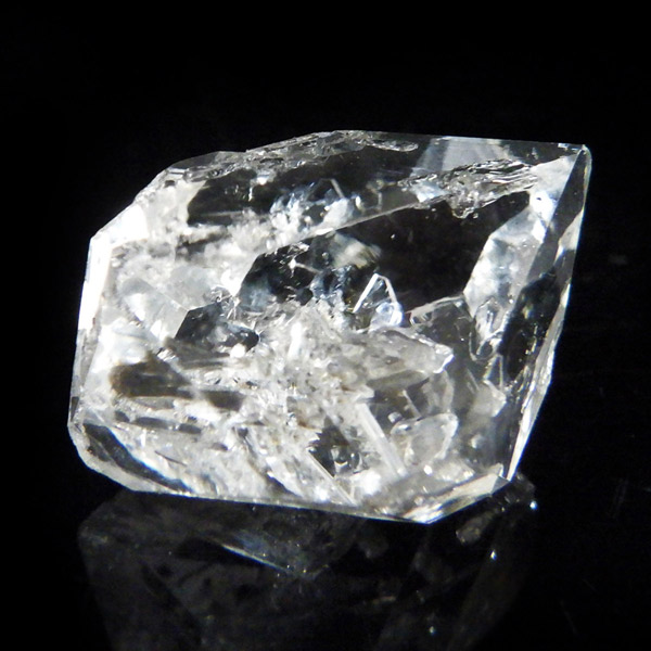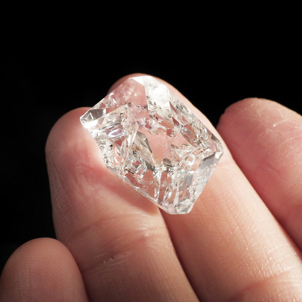 ハーキマーダイヤモンド原石です。抜群の透明度で圧巻の美しさです。キラキラと輝くその姿は、ダイヤモンドのようで、息を呑むほど素晴らしい輝きに満ちています。ハーキマーダイヤモンドはアメリカ、ニューヨーク州、ハーキマー地区でしか採掘されないダイヤのようなクリスタル。母岩の穴の中で成長し、ダイヤモンドのような両側の18面体の結晶になります。そして、ダイヤモンドのように力強い光沢感と輝きを兼ね備えているのが特長です。