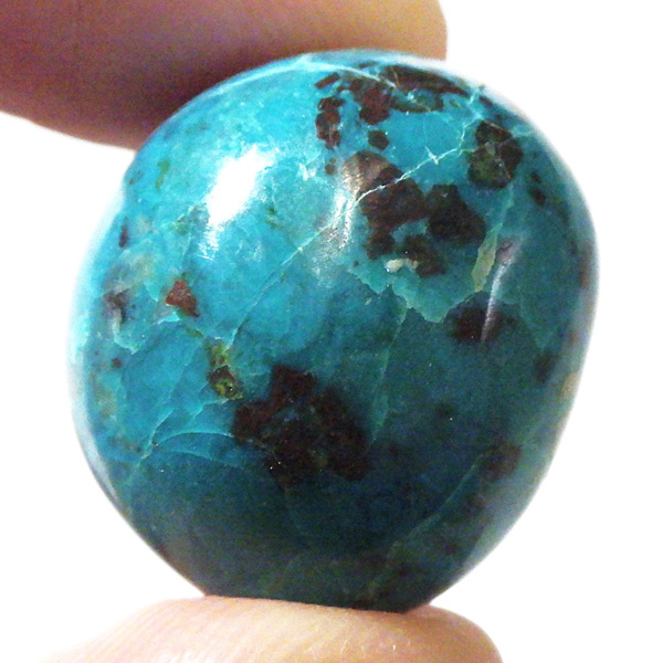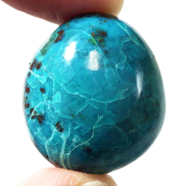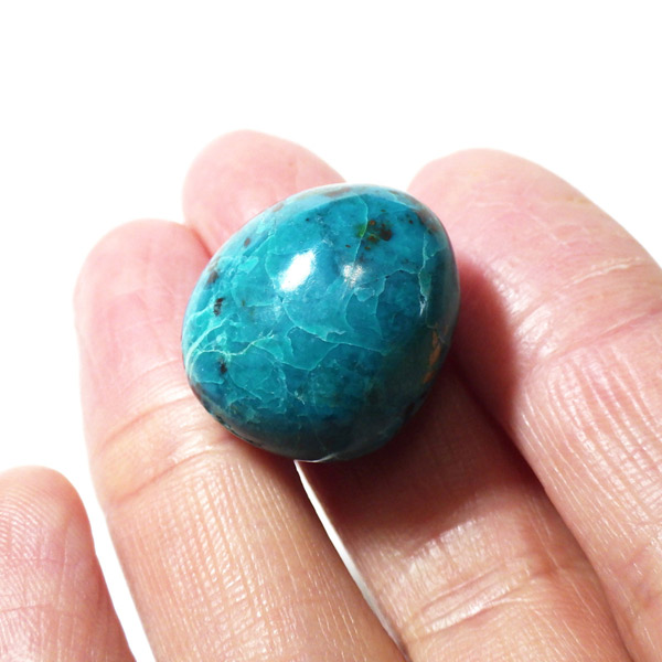 ペルー産のクリソコラ、タンブルです。成分が珪酸塩である為、和名で珪孔雀石と呼ばれています。鮮やかなグリーンブルーは人気の高い鉱物の一つです。