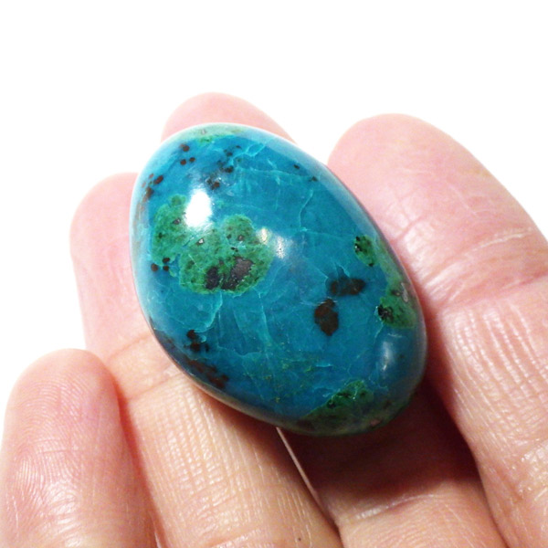 クリソコラは、何事に対してもしっかりと地に足を着けた実りあるものになるような生活ができるよう、サポートしてくれる石とされています。 仕事や恋愛、幸せな家庭生活や安産のお守りとしても人気です。 また、生活リズムを正しく整えてくれる作用もあり、心身のバランスを整えてストレスを吸収し、情緒を安定させてくれるといわれています。 体からマイナスエネルギーを抜いてくれる石でもあるので、健康のお守りとしてもオススメです。
