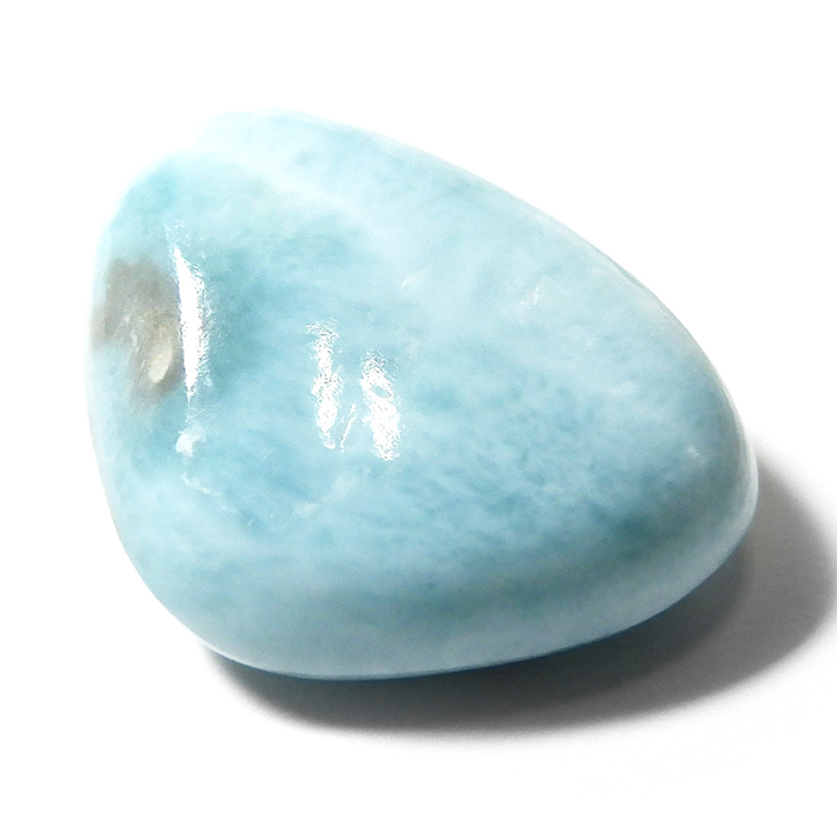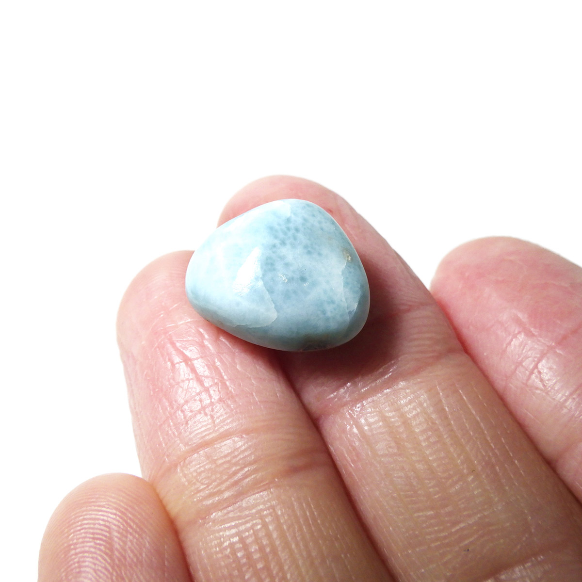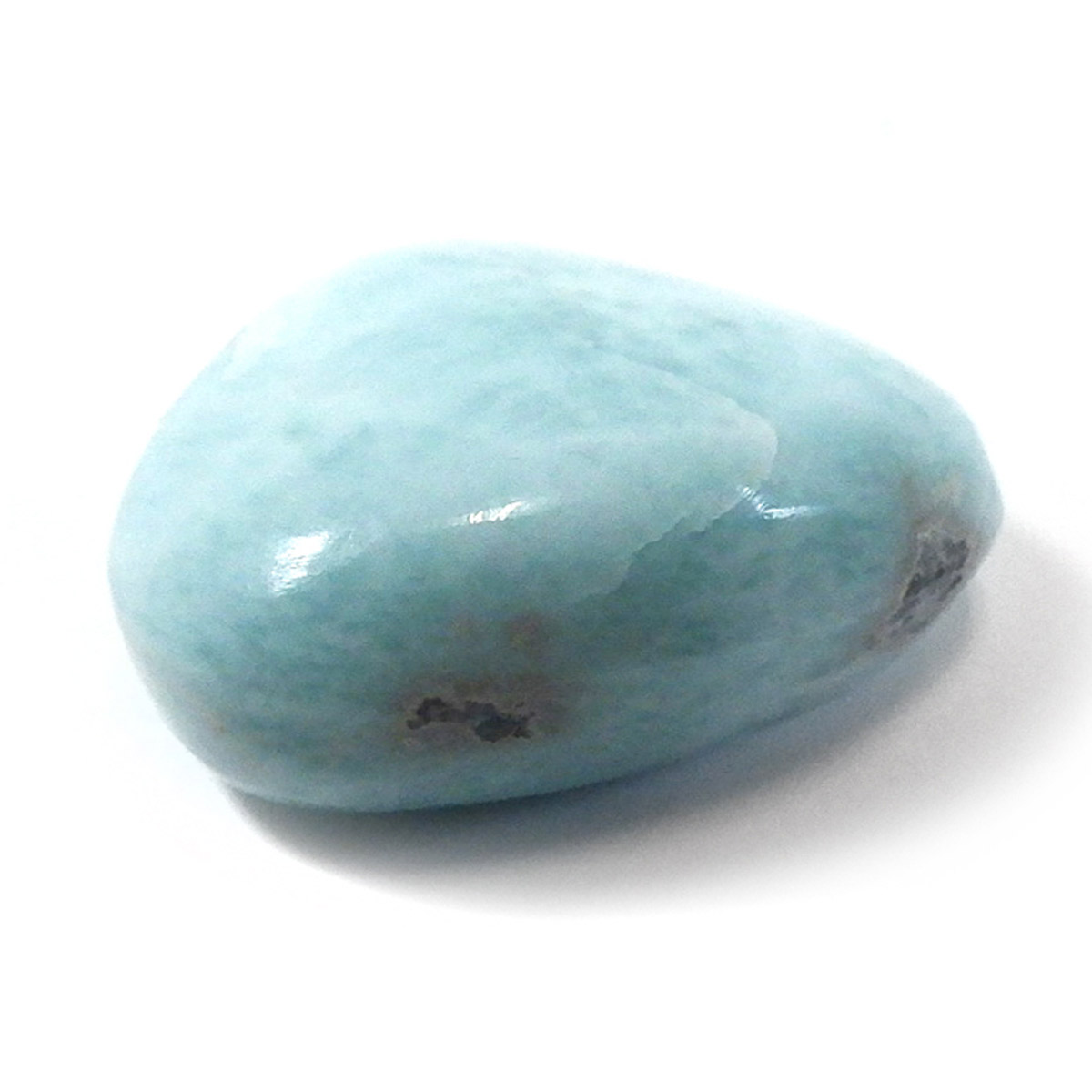 ドミニカ共和国産のラリマー、タンブルです。三大ヒーリングストーンに数えられるほど美しいラリマー、美しいカリブ海のような色合いのブルーとホワイトの模様がきれいに入っています。アクセサリーになるようなハイグレードのラリマーで撮影中に手に触れるだけでパワーを感じられました。1つでも十分癒されるのですが、複数個揃えられると気持ちが随分上がると思います。今のストレス社会には癒しが必要だと思いますので、この出会いに高品質ラリマーを是非いかがでしょうか。