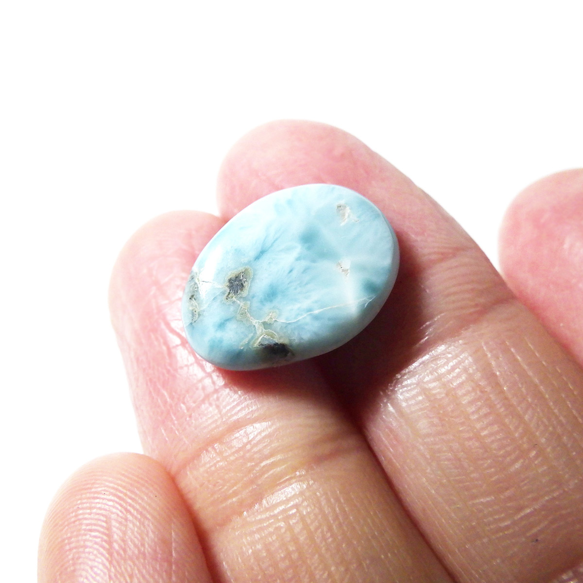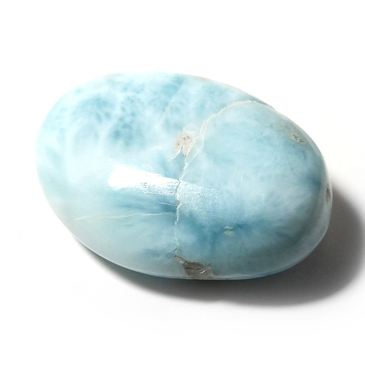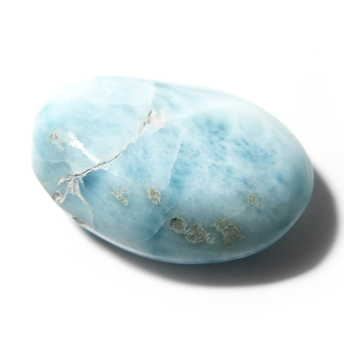 ドミニカ共和国産のラリマー、タンブルです。三大ヒーリングストーンに数えられるほど美しいラリマー、美しいカリブ海のような色合いのブルーとホワイトの模様がきれいに入っています。アクセサリーになるようなハイグレードのラリマーで撮影中に手に触れるだけでパワーを感じられました。1つでも十分癒されるのですが、複数個揃えられると気持ちが随分上がると思います。今のストレス社会には癒しが必要だと思いますので、この出会いに高品質ラリマーを是非いかがでしょうか。