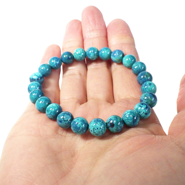 シャッタカイトクリソコラ ブレスレット ナミビア産 8mm玉×23個 内周16.5cm