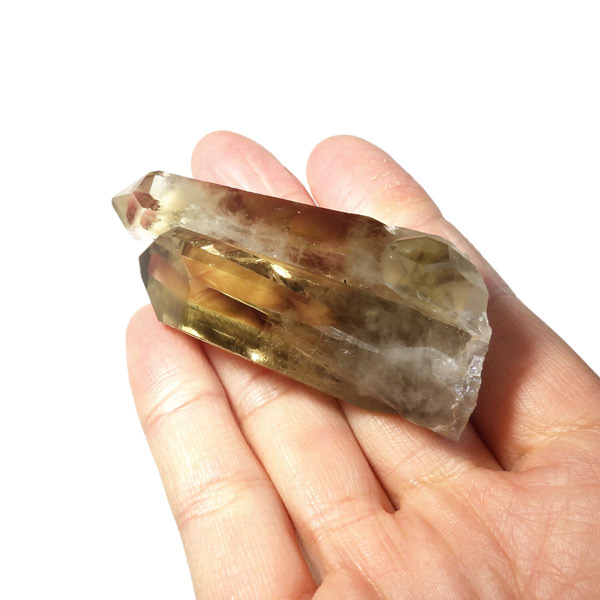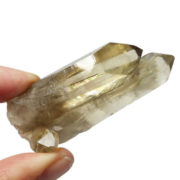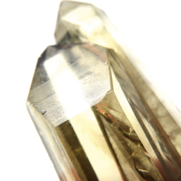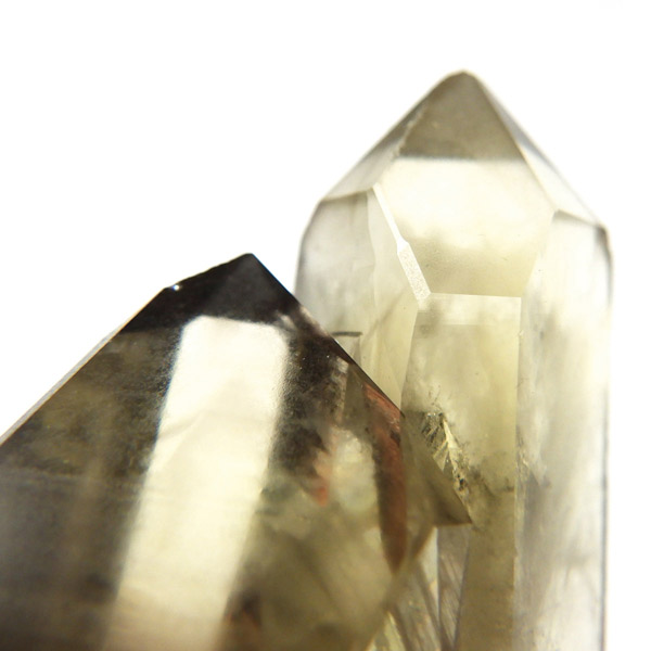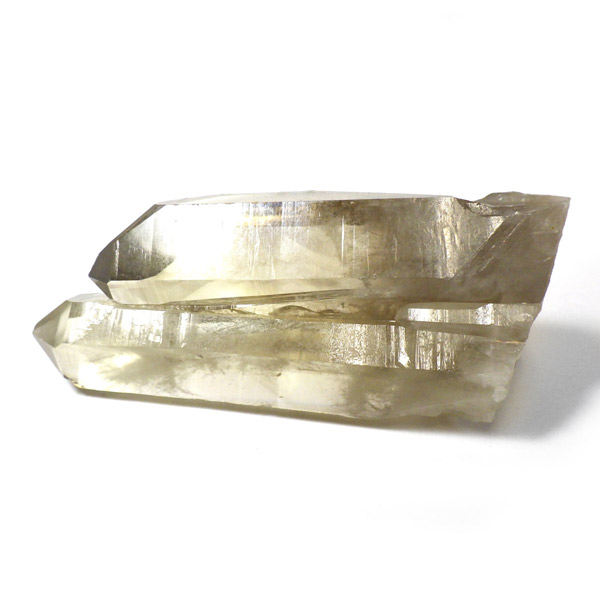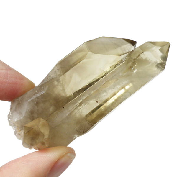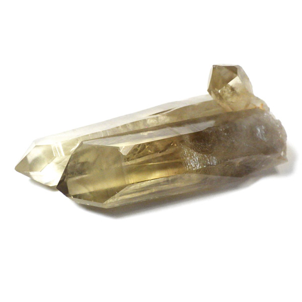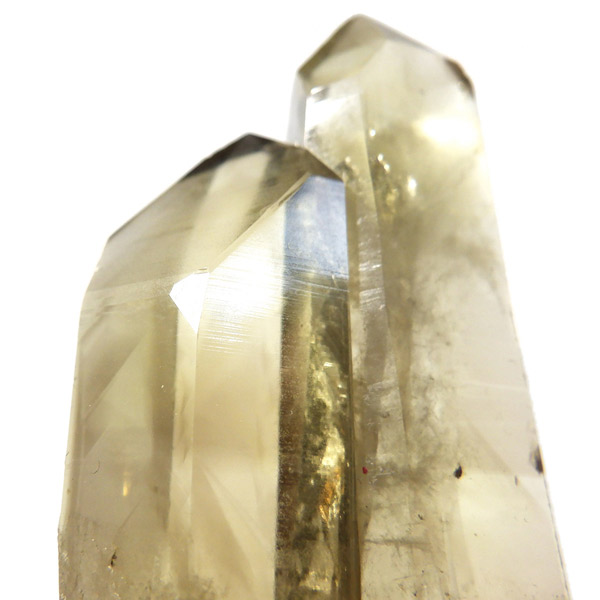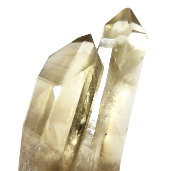 マダガスカル産のナチュラルシトリン、ツインのポイント原石です。現在、流通しているシトリンの加工品などは加熱処理を施したものが大半で、ナチュラルな原石は大変希少です。マダガスカルを含む、アフリカはまだまだ未開の土地も多く、希少ですが美しいシトリンが眠っているといわれています。優しいイエローの色付きで、非常に高い透明度、表面には成長線が見られ光沢があります。内部は薄っすらとファントムのようになっている箇所、きれいなレインボーも確認できます。根元に小さなシトリンのポイントもあります。夫婦と子供のようで可愛らしい原石です。
