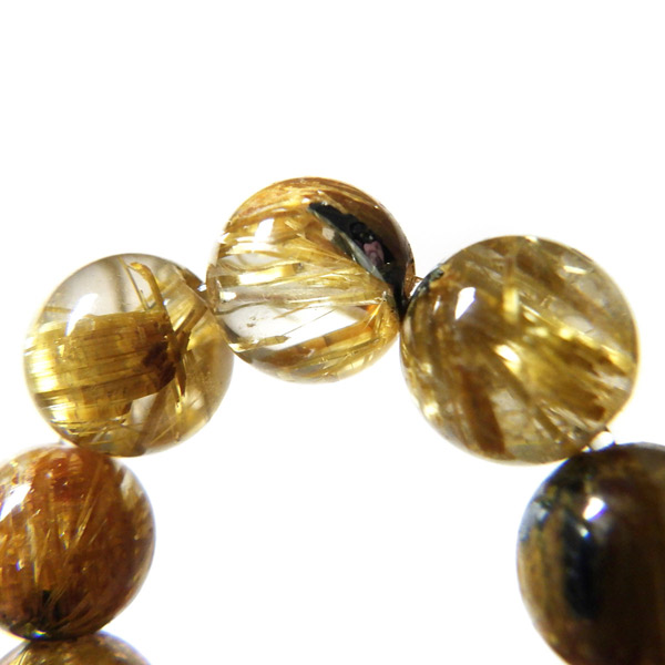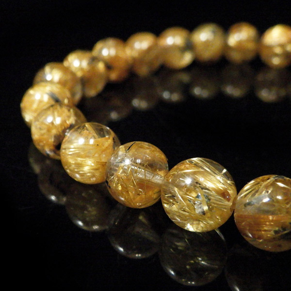 ヘマタイトルチルクォーツを使用したブレスレットです。 ヘマタイトとルチルが共生し、さらにクォーツに内包された希少なブレスレットになります。ルチルの色がゴールドでクォーツの透明度が大変高く、大変品質の良いものです。ルチルクォーツの金運はもとよりヘマタイトの勝利・成功などの意味合いからビジネスのお守りとして良いかもしれません。