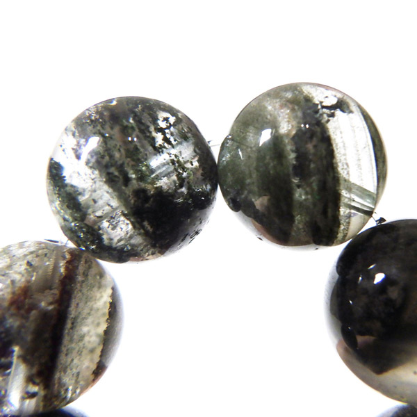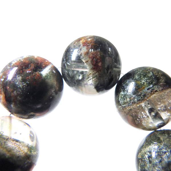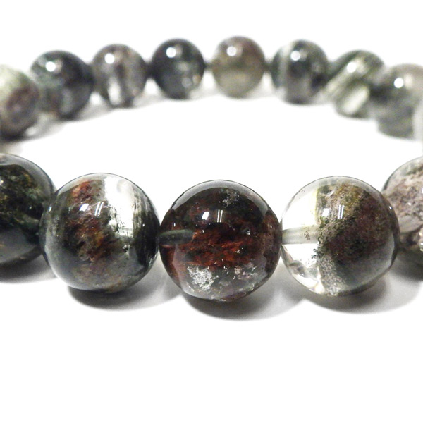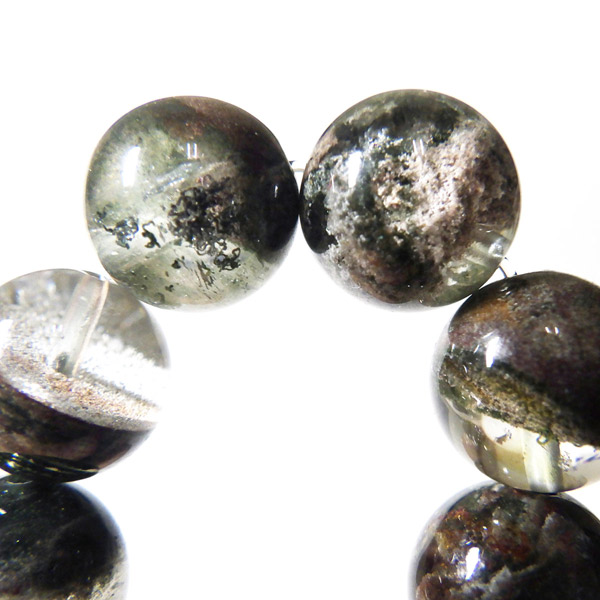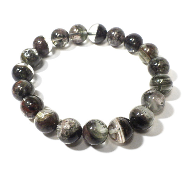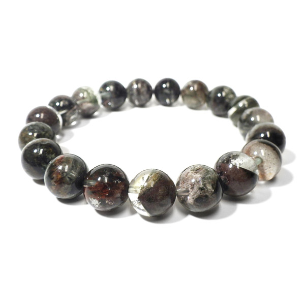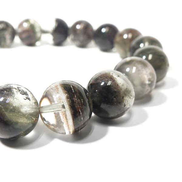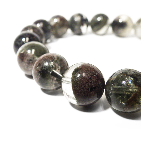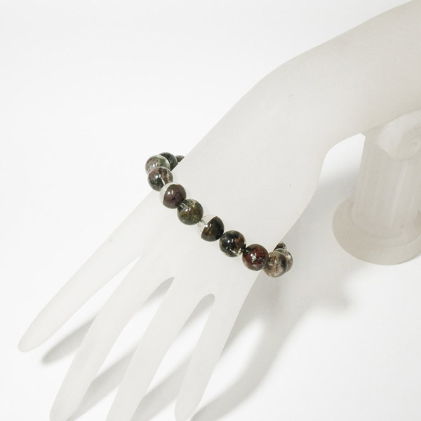 ブラジル産ガーデンクォーツのブレスレットです。ガーデンクォーツは、水晶が形成される過程で、緑や茶色の鉱物や泥岩を巻き込みながら結晶した水晶です。水晶の中に自然の風景が閉じ込められたようにも見えるため、「庭園水晶」「苔入り水晶」とも呼ばれています。透明度が高く、ガーデンクォーツ特有の鉱物が綺麗に入っております。情緒ある落ち着いた色合いで癒されますね。