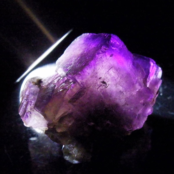 メキシコ産のパープルフローライト原石です。 結晶の形が細かく、表面にびっしりと幾何学模様が刻まれています。先端に行く程、パープルが濃くなっていくのが特徴的。 光にかざすと半透明で幻想的です(写真5枚目)。