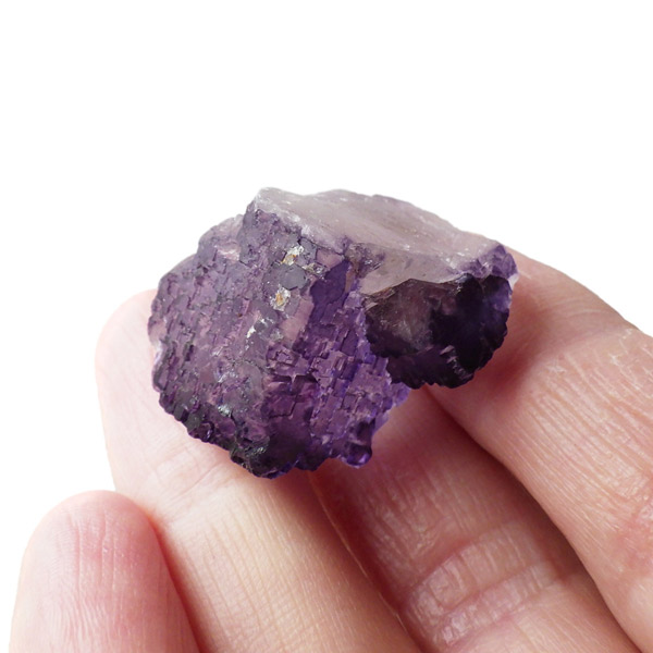 メキシコ産のパープルフローライト原石です。 結晶の形が細かく、表面にびっしりと幾何学模様が刻まれています。先端に行く程、パープルが濃くなっていくのが特徴的。 光にかざすと半透明で幻想的です(写真5枚目)。