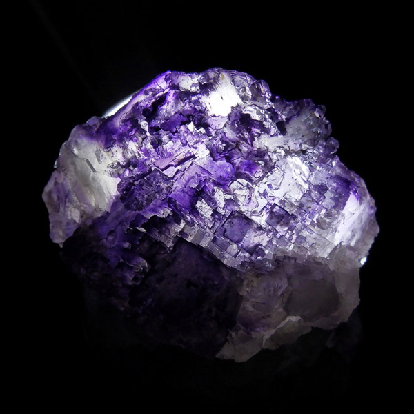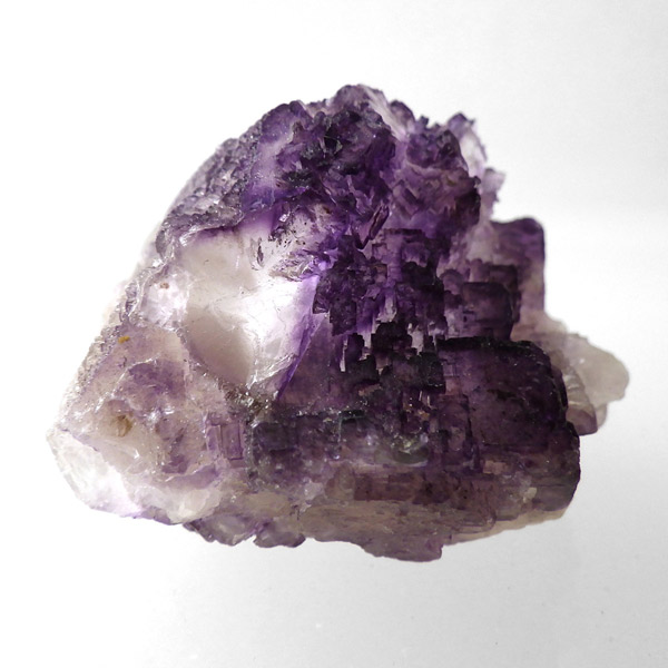 メキシコ産のパープルフローライト原石です。 結晶の形が細かく、表面にびっしりと幾何学模様が刻まれています。先端に行く程、パープルが濃くなっていくのが特徴的。 光にかざすと半透明で幻想的です(写真5枚目)。