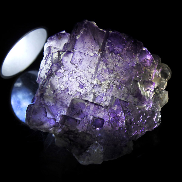 メキシコ産のパープルフローライト原石です。 結晶の形が細かく、表面にびっしりと幾何学模様が刻まれています。先端に行く程、パープルが濃くなっていくのが特徴的。 光にかざすと半透明で幻想的です(写真5枚目)。