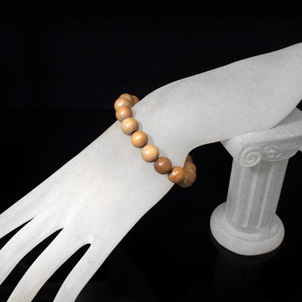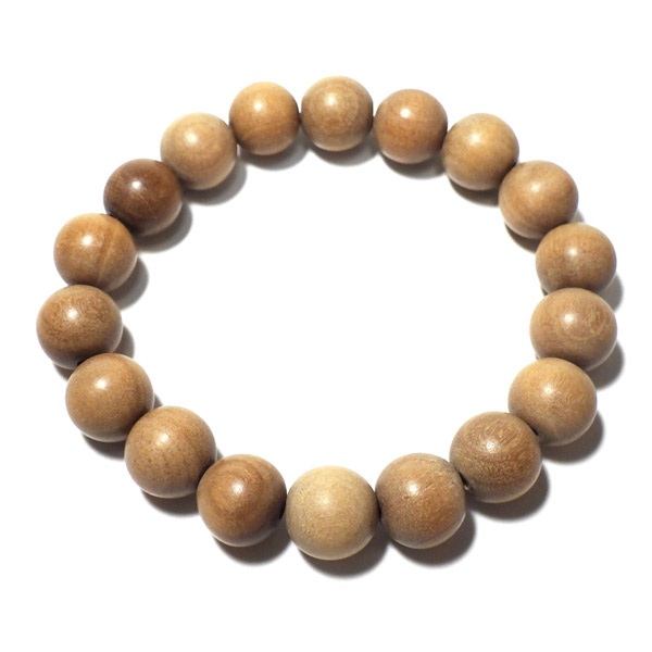 インド白檀で作られた木製のブレスレットです。白檀は香木として特有の良い香りがすることで有名です。インド白檀は、現在では入手が大変困難で希少価値の高いものとなっております。付け心地は軽やかで石にはない温かみがあります。