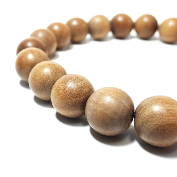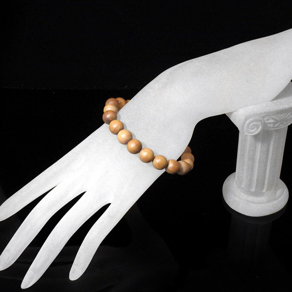 インド白檀で作られた木製のブレスレットです。白檀は香木として特有の良い香りがすることで有名です。インド白檀は、現在では入手が大変困難で希少価値の高いものとなっております。付け心地は軽やかで石にはない温かみがあります。