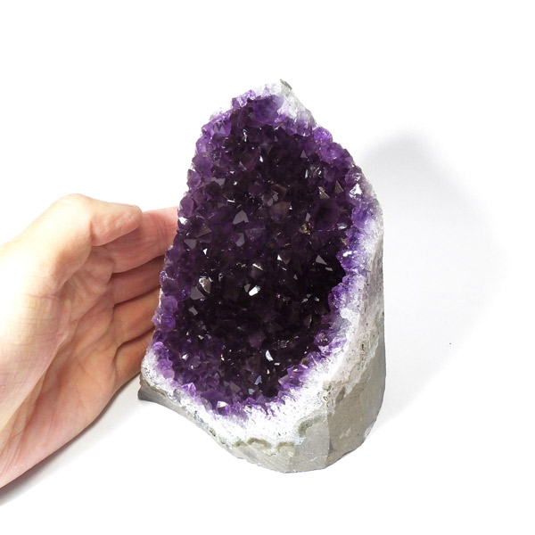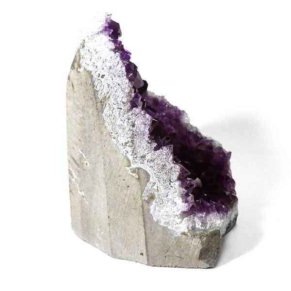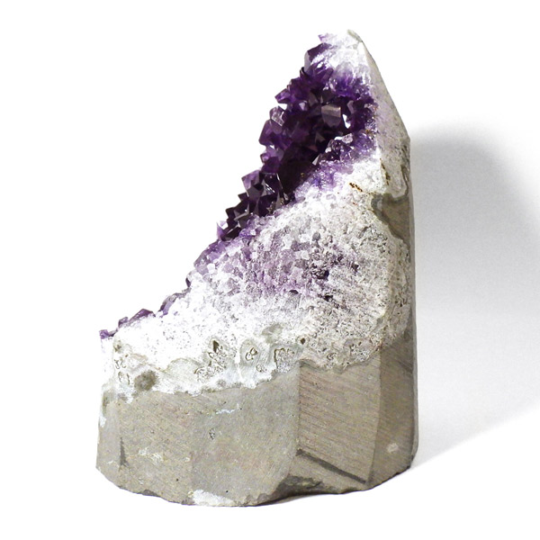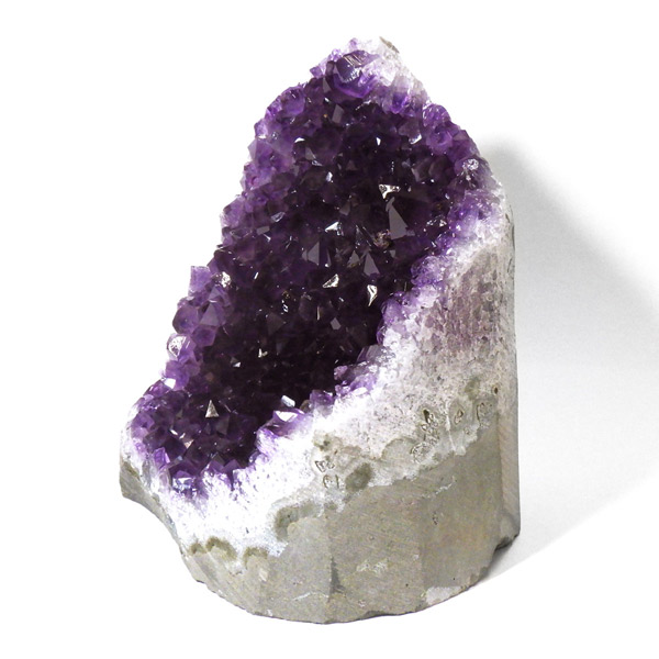 ウルグアイ産のアメジストクラスターです。良質なアメジストの証である深い紫の色がしっかりと入っています。底面を平らにカットしておりますので据わりが良く、ドームの様にそのまま置いて頂けます。