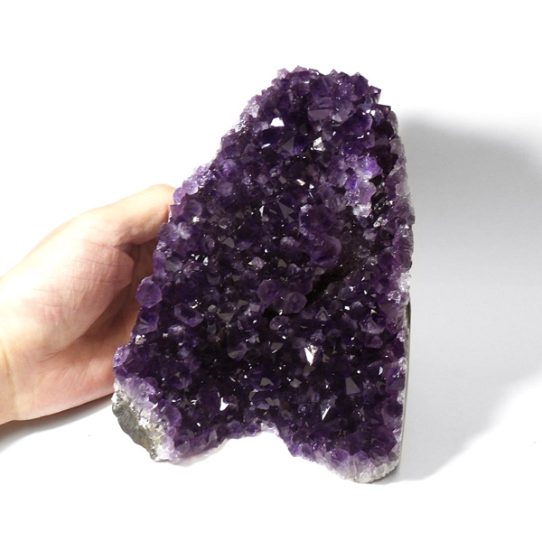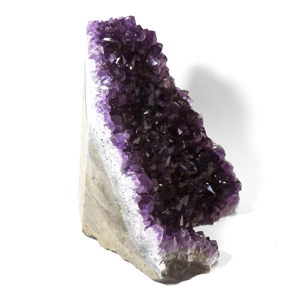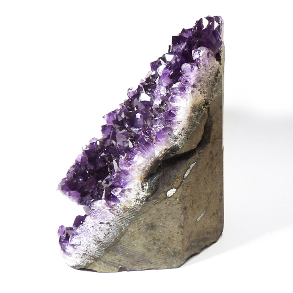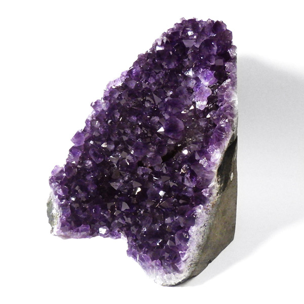 ウルグアイ産のアメジストクラスターです。良質なアメジストの証である深い紫の色がしっかりと入っています。底面を平らにカットしておりますので据わりが良く、ドームの様にそのまま置いて頂けます。