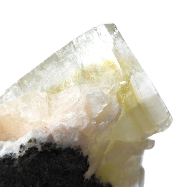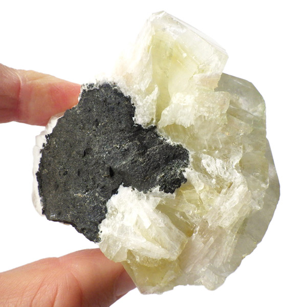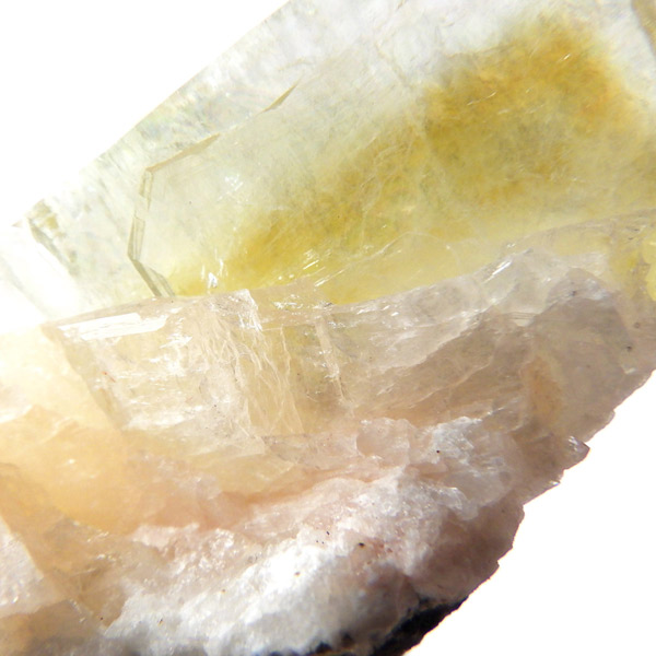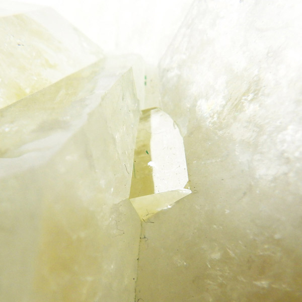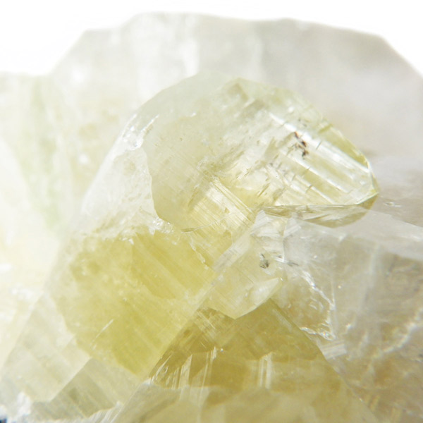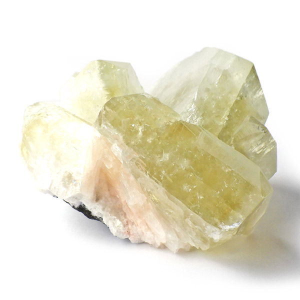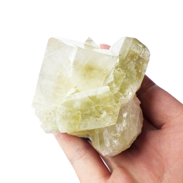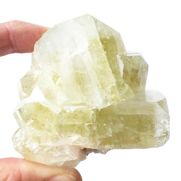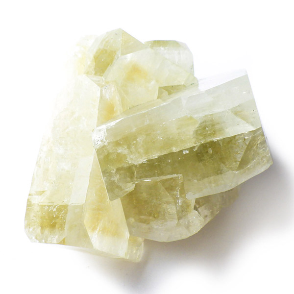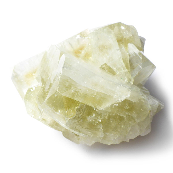 インド産のグリーンアポフィライト原石です。6つ程のガラス質のブロック状のアポフィライト結晶からなる、艶・照りが見事な標本です。カラーはイエローグリーン。アポフィライトならではのギラギラの劈開面も美しく、どの角度から見てもバランスのとれたアポフィライトです。