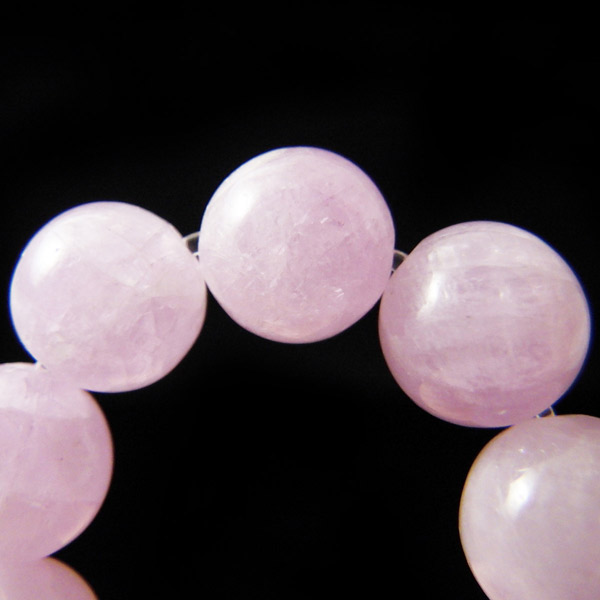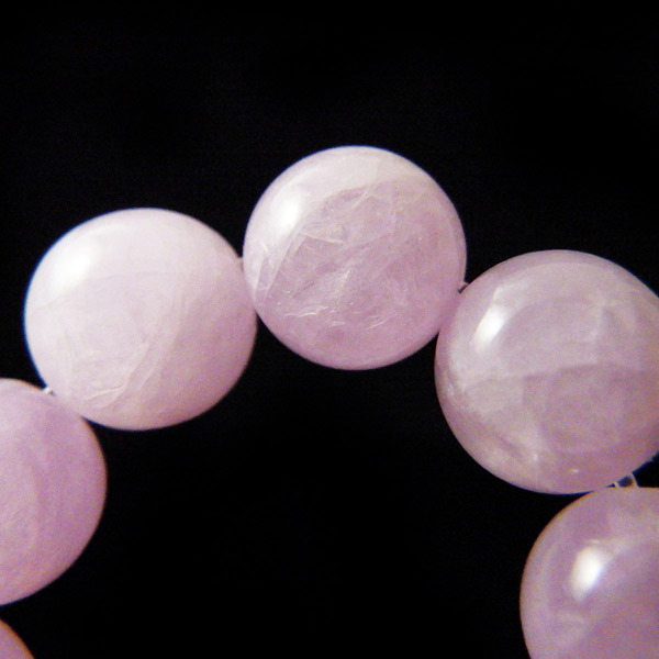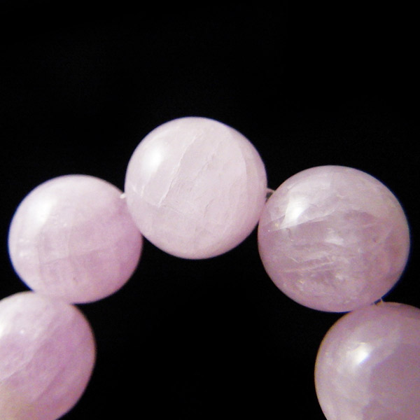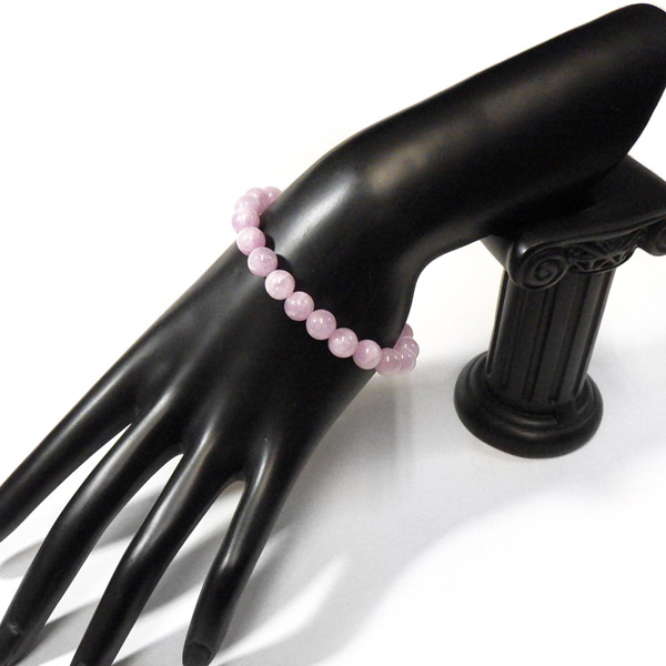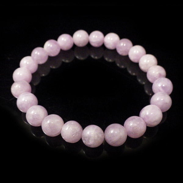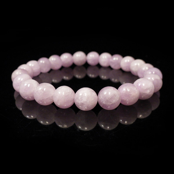 高品質ミルキークンツァイトのブレスレットです。クンツァイトは、1902年にカリフォルニア州で発見された比較的新しいパワーストーンですが、「スポデューメン」という鉱物の一種で、その中でピンク色のものをクンツァイトといいます。本商品は、ほんのりラベンダー色の優しい色合いのクンツァイトです。さり気なく手元を飾ることができ、大人の女性らしさが更に際立つでしょう。
