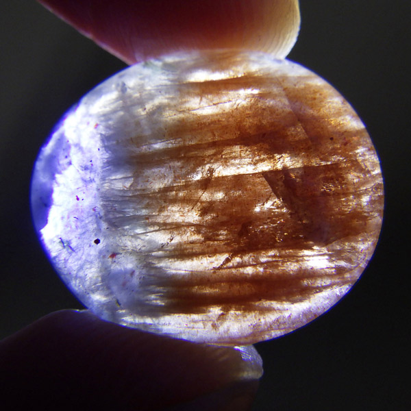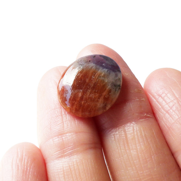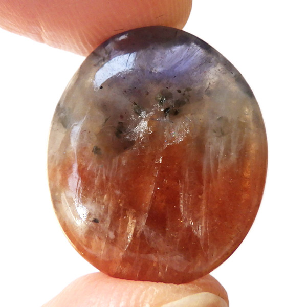 サンストーンの部分はもちろん、アイオライトの部分も内包物が見られ、アベンチュレッセンス効果でキラキラと輝いて見えます。