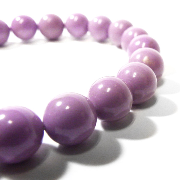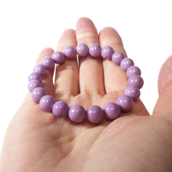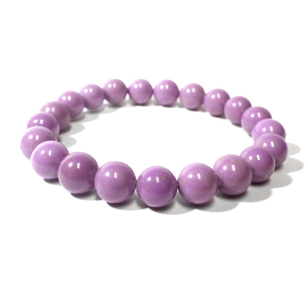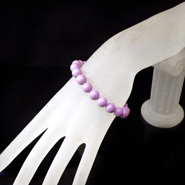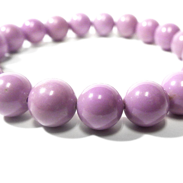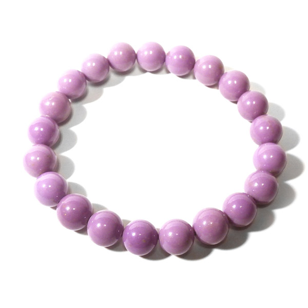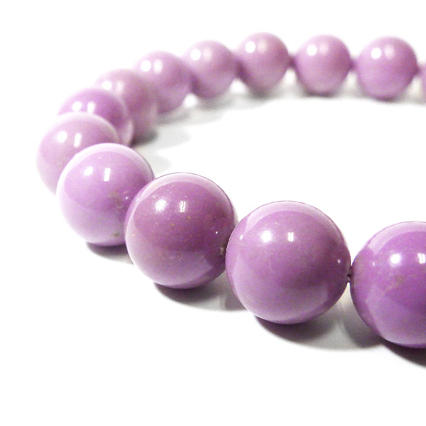 アメリカ産、フォスフォシデライトのブレスレットです。淡い紫色の石で透明感はありません。ピンクから紫に変化していく途中の色、と表現した方がしっくりくるような色味です。 色味が均一で発色の良い美しいブレスレットです。