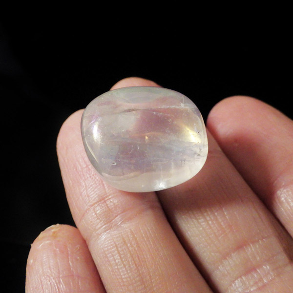 ブラジル産のエンジェルオーラ、タンブルです。主にエンジェルオーラ、エンジェルオーラクォーツ、又はホワイトオーラ等と呼ばれており、水晶(クォーツ)にオーラ加工を施しています。和名を「蒸着水晶」と付けられており、水晶に金属などを真空中の加熱により飛ばして表面に均一に焼き付ける処理を施しています。そのため、虹のような光沢が表れます。