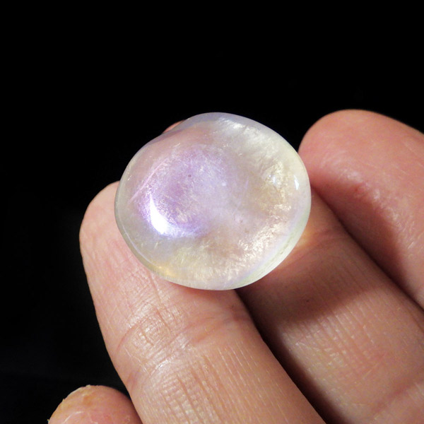 ブラジル産のエンジェルオーラ、タンブルです。主にエンジェルオーラ、エンジェルオーラクォーツ、又はホワイトオーラ等と呼ばれており、水晶(クォーツ)にオーラ加工を施しています。和名を「蒸着水晶」と付けられており、水晶に金属などを真空中の加熱により飛ばして表面に均一に焼き付ける処理を施しています。そのため、虹のような光沢が表れます。