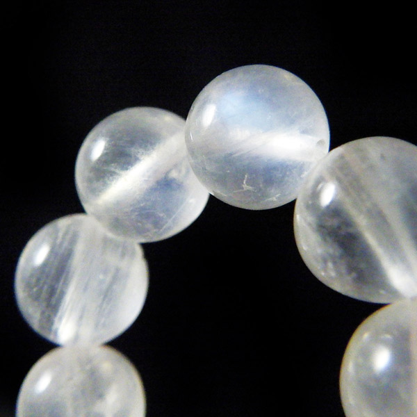 スリランカ産、ブルームーンストーンのブレスレットです。透明度が高く、ブルーのシラーが一粒ごとにハッキリと見られます。角度を変えたり、光源の方向によって、石の中でシラーが動き、様々な表情を見せてくれます。