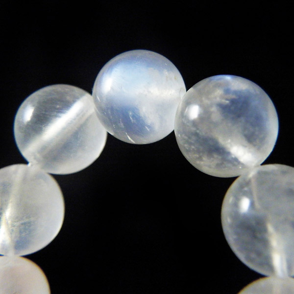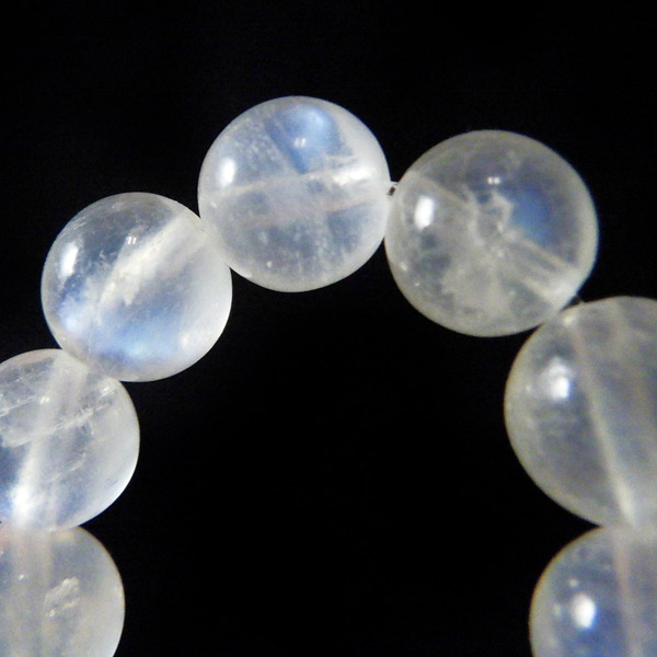 スリランカ産、ブルームーンストーンのブレスレットです。透明度が高く、ブルーのシラーが一粒ごとにハッキリと見られます。角度を変えたり、光源の方向によって、石の中でシラーが動き、様々な表情を見せてくれます。