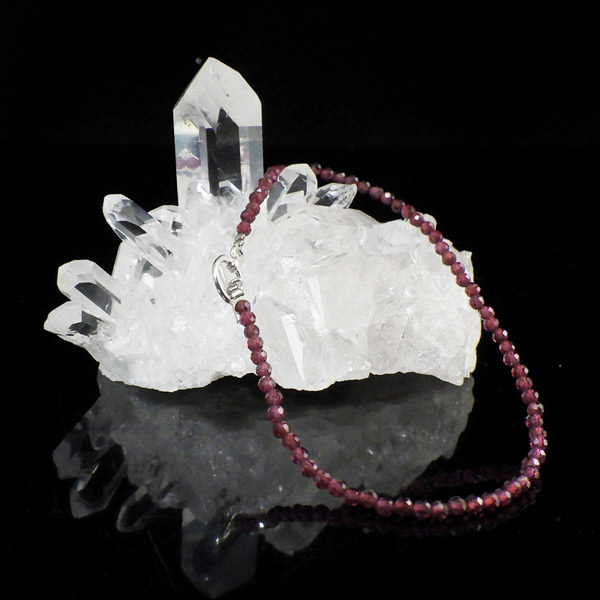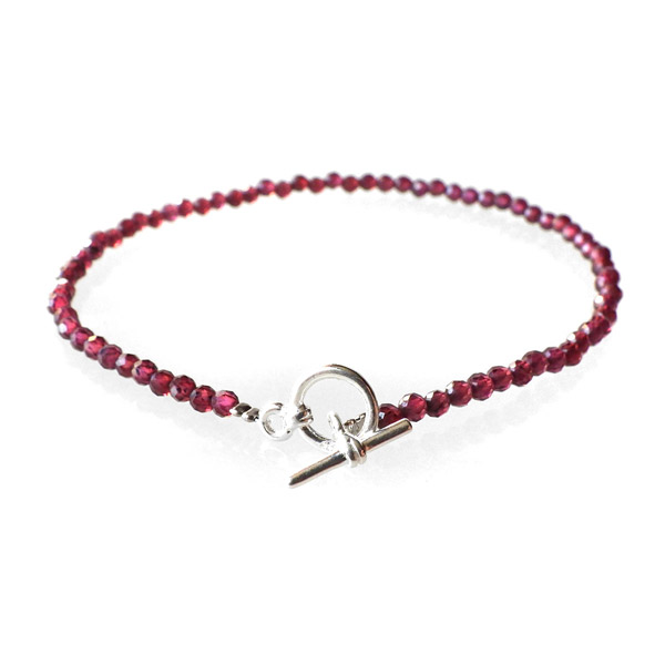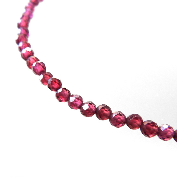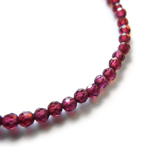 透明感のある品質の良いガーネットを使用しています。 上品なワインレッドが魅力的で、カットを施されたビーズがキラキラ輝きます。細身で可愛らしく、いつもより気分良くお出かけできそうですよね。
