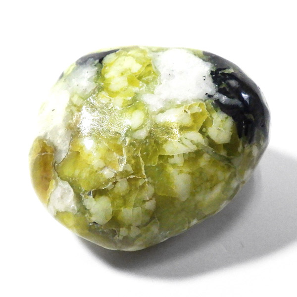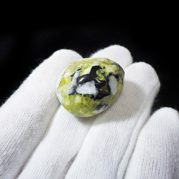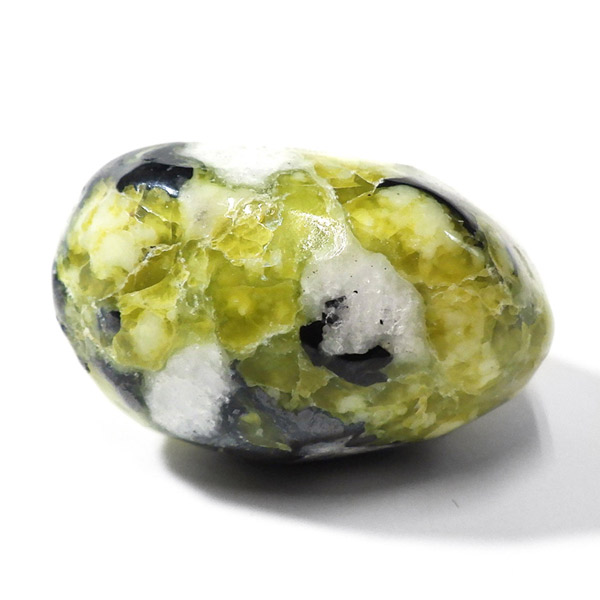 ノルウェー産のリザーダイト、タンブルです。リザーダイトは、サーペンティンの一種です。日本では黄色であるところから「きなこ石」と呼ばれていたりもする、非常に微細な板状の塊が特徴の鉱物です。 世界中で産するサーペンティンですが、イギリスやノルウェーで出土するリザーダイトは、「ノルウェー翡翠」と言った華やかなニックネームがついた程、透明感のある美しい黄緑色の石です。 イギリスのリザード島で発見されたことから名づけられていますが、本商品はノルウェー産です。 この、鮮やかなイエローグリーンのサーペンティンが魅力的です。 また、滑らかな肌触りと優しく明るい色彩で、ヒーリングストーンとして多くのファンを魅了しています。
