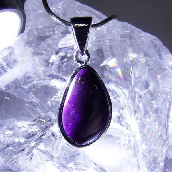 スギライトはもともと産出量が少ない鉱物なのですが、近年本当に質の良いものが見当たらなくなってきており、質の良い明るいパープルの発色のものは大変貴重になりました。大人びた魅惑のパープル、ヒーリングストーンとしても有名なスギライト、毎日身に着ける胸元のワンポイントにぴったりなペンダントです。