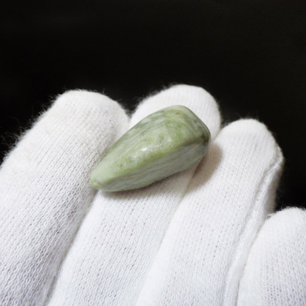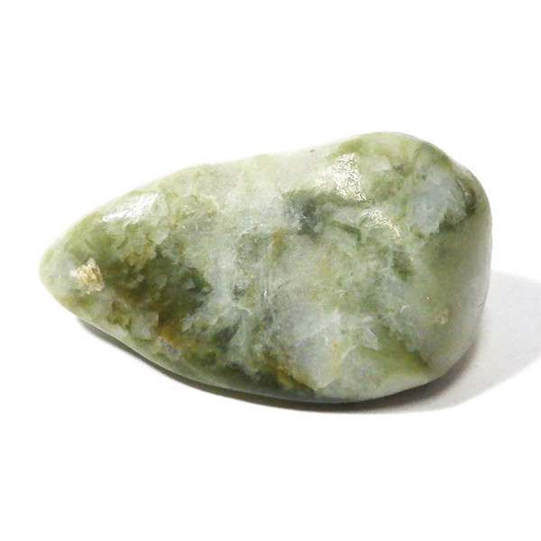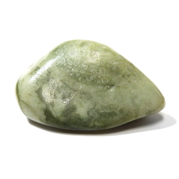 インド産のインフィナイト、タンブルです。インフィナイトはケイ酸マグネシウム鉱物で、クリソタイルとサーペンティンの組み合わせといわれています。通常、黄色、クリーム、緑、などの優しい色味をしており、縞模様が特徴的です。サーペンティンの一種で南アフリカで見つかるものを特別視し、インフィナイトと名づけられました。現在、インフィナイトは南アフリカとインドでしか見られない組み合わせとのことです。インフィナイトストーン、インフィナイトサーペンティンとも呼ばれています。