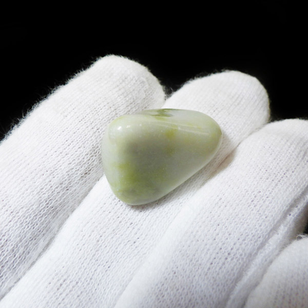 インド産のインフィナイト、タンブルです。インフィナイトはケイ酸マグネシウム鉱物で、クリソタイルとサーペンティンの組み合わせといわれています。通常、黄色、クリーム、緑、などの優しい色味をしており、縞模様が特徴的です。サーペンティンの一種で南アフリカで見つかるものを特別視し、インフィナイトと名づけられました。現在、インフィナイトは南アフリカとインドでしか見られない組み合わせとのことです。インフィナイトストーン、インフィナイトサーペンティンとも呼ばれています。