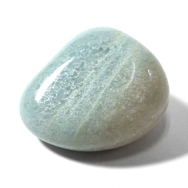 ブラジル産のトロレアイト、タンブルです。トロレアイトは非常に珍しいリン酸塩鉱物で淡青緑色から青みがかった塊で見つかり、ラズライト、スコルザライトとの混合物のため、青く色付いています。発見者のスウェーデンのトロール氏にちなんで名付けられました。トロール=妖精という意味からアセンションストーン(碧い妖精の石)とも呼ばれています。日本ではトロール石とも呼ばれています。ブルーの濃淡や、色味がくすみカラーでかわいいです。