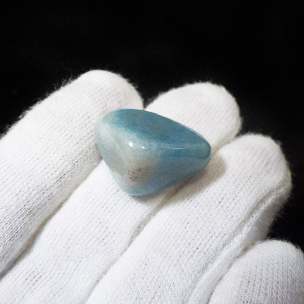 ブラジル産のトロレアイト、タンブルです。トロレアイトは非常に珍しいリン酸塩鉱物で淡青緑色から青みがかった塊で見つかり、ラズライト、スコルザライトとの混合物のため、青く色付いています。発見者のスウェーデンのトロール氏にちなんで名付けられました。トロール=妖精という意味からアセンションストーン(碧い妖精の石)とも呼ばれています。日本ではトロール石とも呼ばれています。ブルーの濃淡や、色味がくすみカラーでかわいいです。